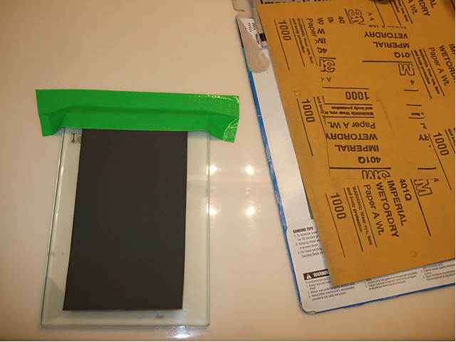 The process of lapping in detail will not be reviewed here, but in summary, one uses wet/dry sandpaper and a flat surface (glass usually) to slowly and iteratively grind an uneven surface. The goal of lapping is not be to make a mirror surface, rather, it is to make flat surface.