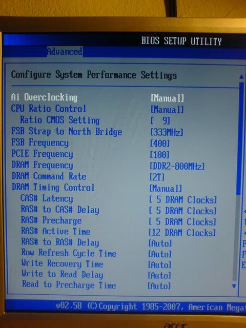I'm having trouble getting my Q6600 G0 stable at 3.6GHz. I have an ASUS P5K Premium motherboard and an Ultra 120-Extreme heatsink with plenty of airflow in the case. I also have Patriot eXtreme Performance DDR2 800 (5-5-5-15) that I would like to keep at a 1:1 ratio. Please let me know what settings I should try changing. Thanks in advance.