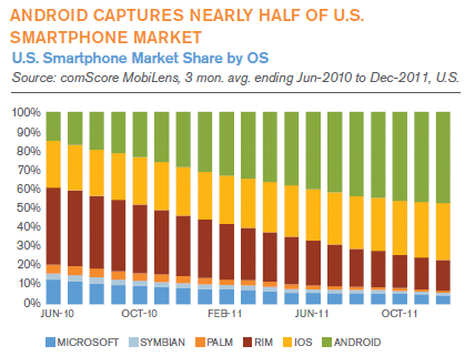 For the first year it was out, Android really attacked RIM market share and gobbled up that space. Apple grew a bit. But it really didn't expand a lot. Same with Android. It's reaching a point where there are really only two siginificant players and it will be interesting to see who gives up more ground since the options are getting thin.