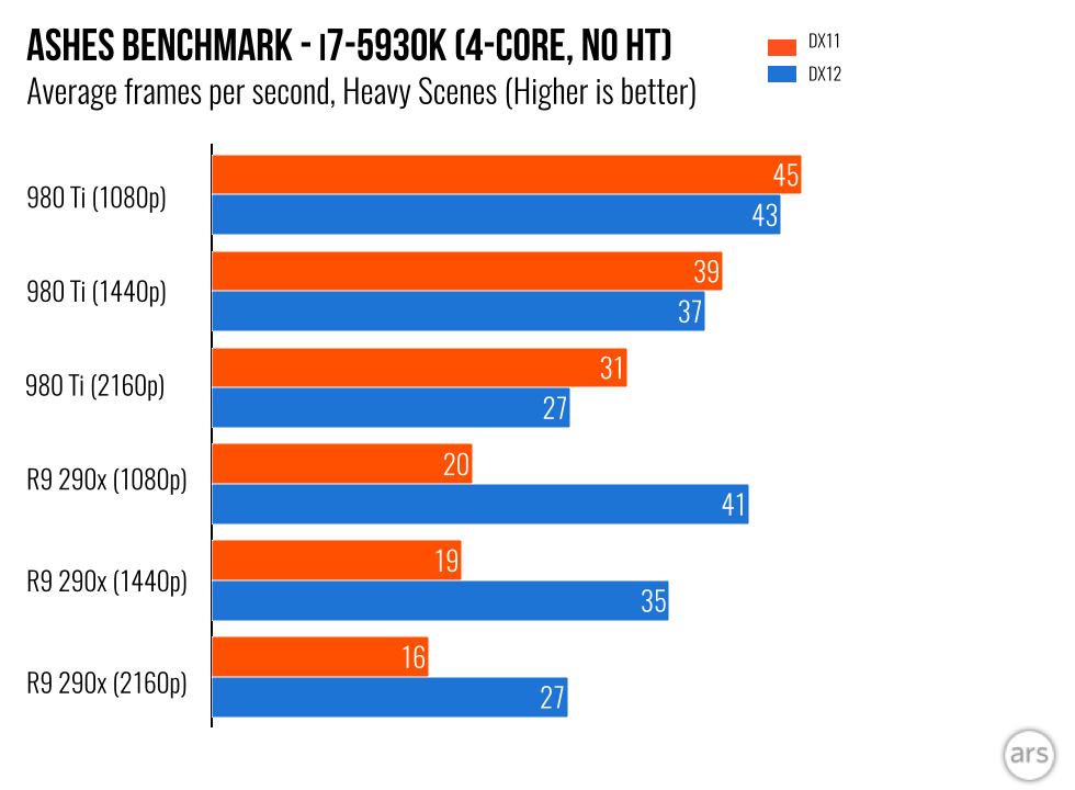 So MAXWELL is very well optimized for DX-11, nothing new here. But in order for MAXWELL in DX-11 to perform almost on par with the DX-12 code, it needs more CPU workload. So if you dont use a fast CPU then MAXWELL in DX-12 will be faster.