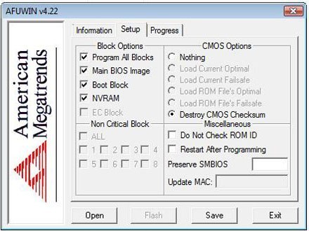 Last but not least : Don't hold me responsible if you brick the BIOS and cannot recover. Both flashing the BIOS from Windows AND erasing the boot block can lead to serious issues.