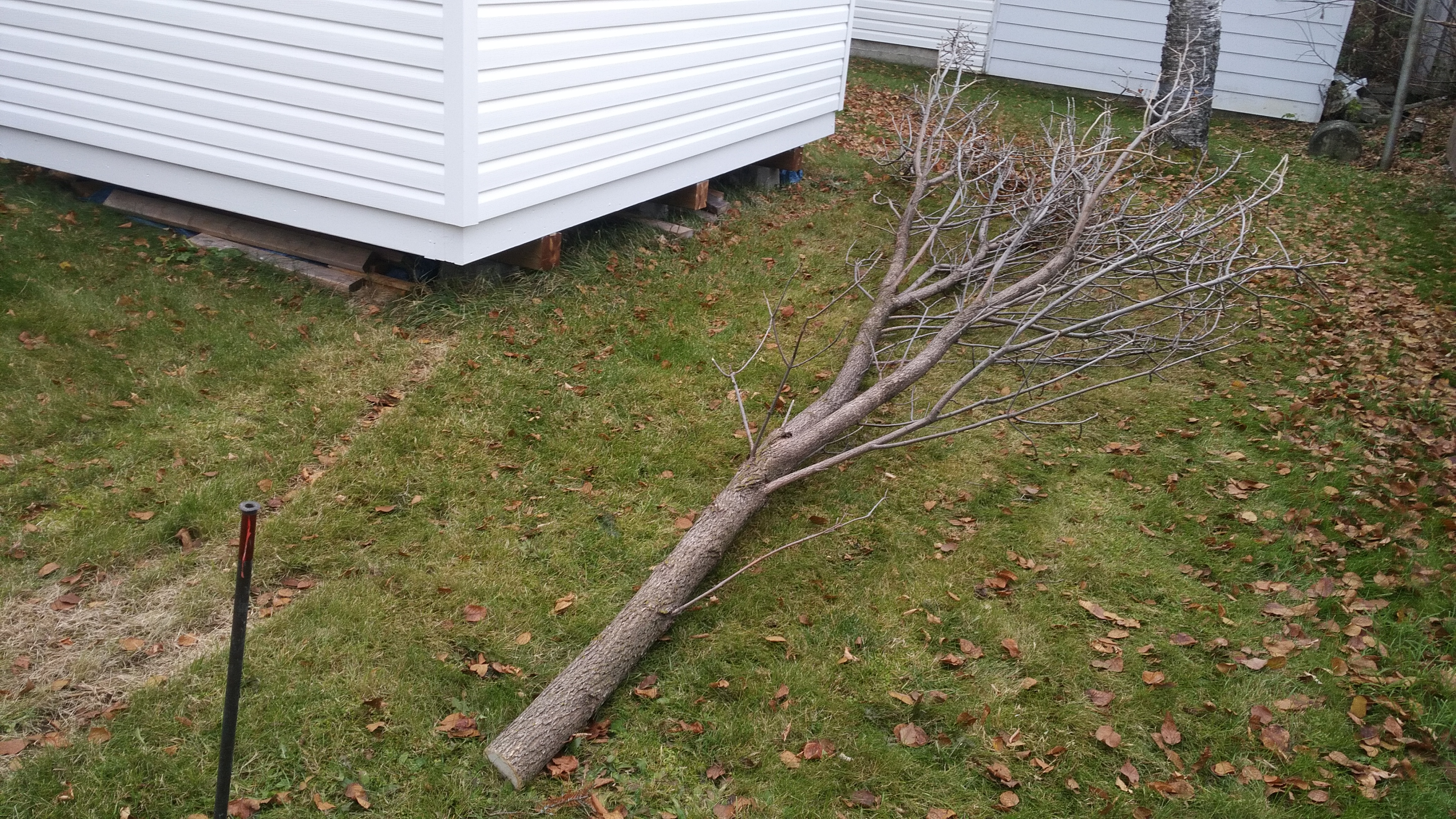 It's getting to point I can't doublecut the tree to remove rounds. Have to cut from two sides then rip it to remove pieces...
