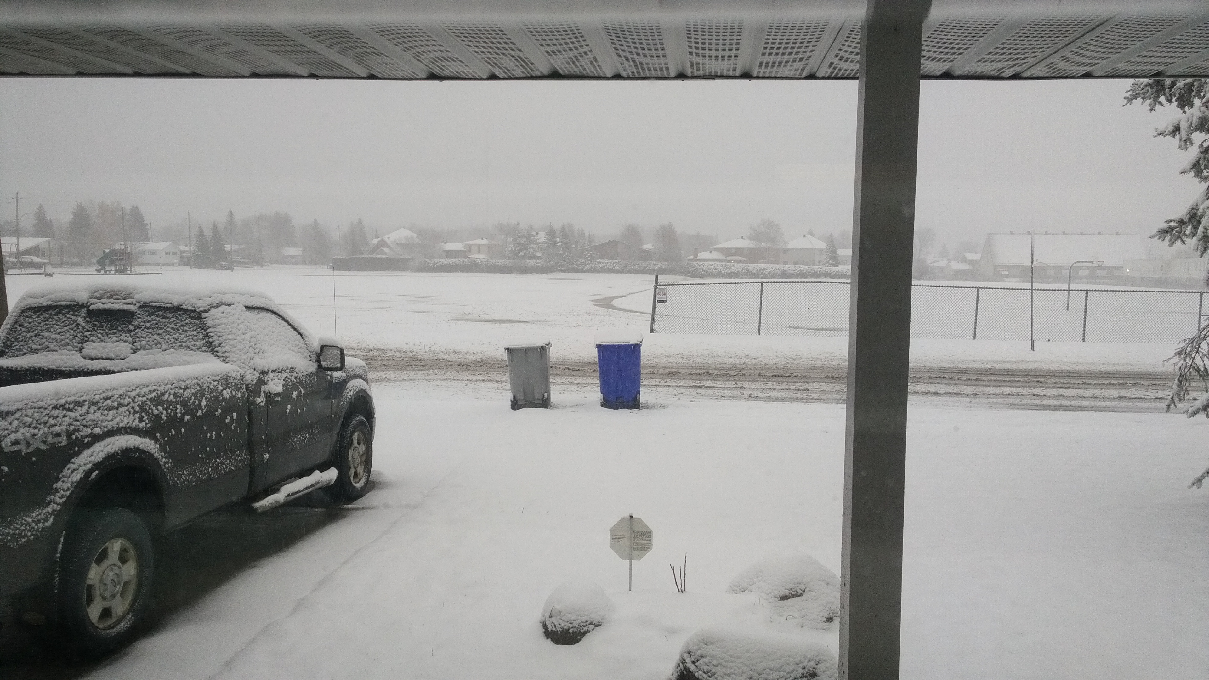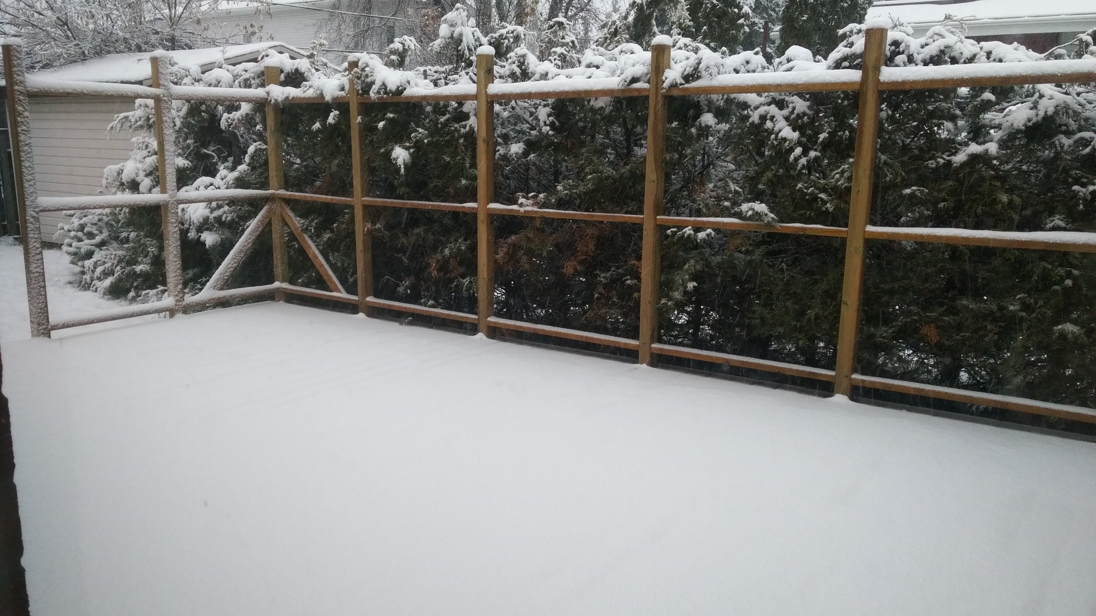 Snow storm nef. It's that heavy wet nasty stuff too. Solar panels are done for the year. That stuff does not really come off with the broom, and it will just freeze into crusty ice. Turned off the inverter. I even wonder if putting them vertical would help, since I see even the stop sights are caked with the stuff. This wet snow can be real nasty.