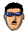 Really a mash-up here. He was too poor to buy any "set" of items. He ended up closing his eyes and clicking! The results? Sad. Omish beard/mustache combo, gold-colored plastic shades. The weirdest purchase, however, was the rasberry swirl ice cream that he was too poor to buy a cup for.