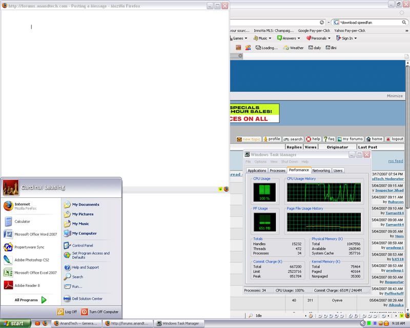 I have never had problems browsing until i reloaded everything on my PC for a new office setup. Now everytime I try to open windows in Firefox they take forever. Even this pop up for creating a new post took about 10 seconds to load. I added a screenshot of the CPU monitor as I opened this window. You can see I do not have much open and I am not maxed out on memory.