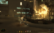 I did notice outside of combat some of the animation was a bit less-than-stellar. Character models also seem to be either loaded with polys, or oddly lacking. For example, the "boss" at the end of the first level uses a standard grunt body model so it has some sharp edges and middling textures, but his face was souped up for the conversation (and maybe PC version) so it adds a great deal of contrast between the two.