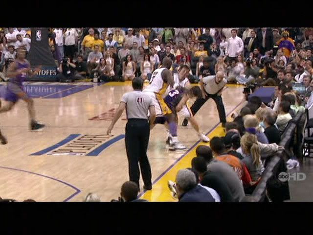 I can't believe the calls the Suns are getting. The refs are blowing the whistle every time the suns flop on D == stupid refs _OR_ thrown game. Did they (the refs) not watch games 1-3 on Tivo...the Suns are flopping on Kobe and Lamar as much as possible.