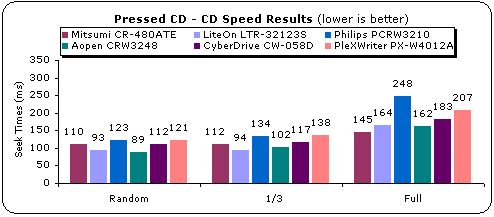 first with a 90ms seek time. The Sanyo and TDK models come in second and third.