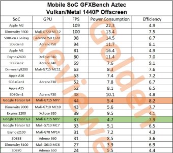 Ah yes, he's testing methodology has been called into question before.dont take this guy serious, do you believe at any power level Tensor G3 gpu is more efficient than D9300?