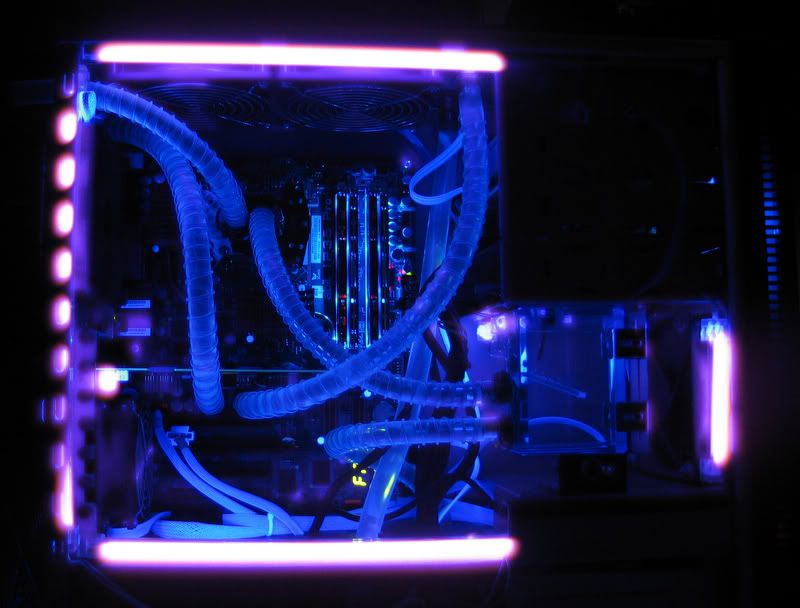 I was thinking of grabbing a Swiftech RADBOX and mounting the radiator in place of the rear 120mm. It will look really goofy, and block some of the IO panel, but it's my best option at the moment. The case has precut grommets that will work with my 3/4" OD tubing, but I still need to route fan wires, etc.