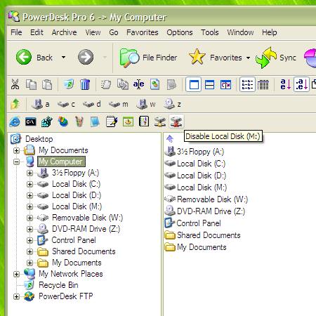 I use PowerDesk so I put 'em on the Launchbar, like so (where are more suitable icons found other than shell32.dll?).