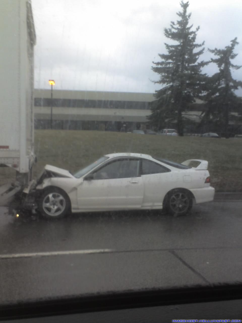 We could slap standard height/spec bumpers on cars, but then people in Corvettes and Ferraris would get all uptight and we'd have to spend billions retrofitting every car on the road, which would also be a form of removing our freedom, since we like what we have already. Here's a Corvette under a semi-truck: