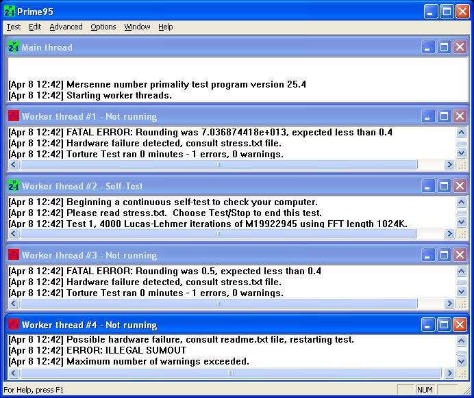 I've never even seen a core crash in Prime when pushed too far - the machine just halts with a BSOD or kernel panic.