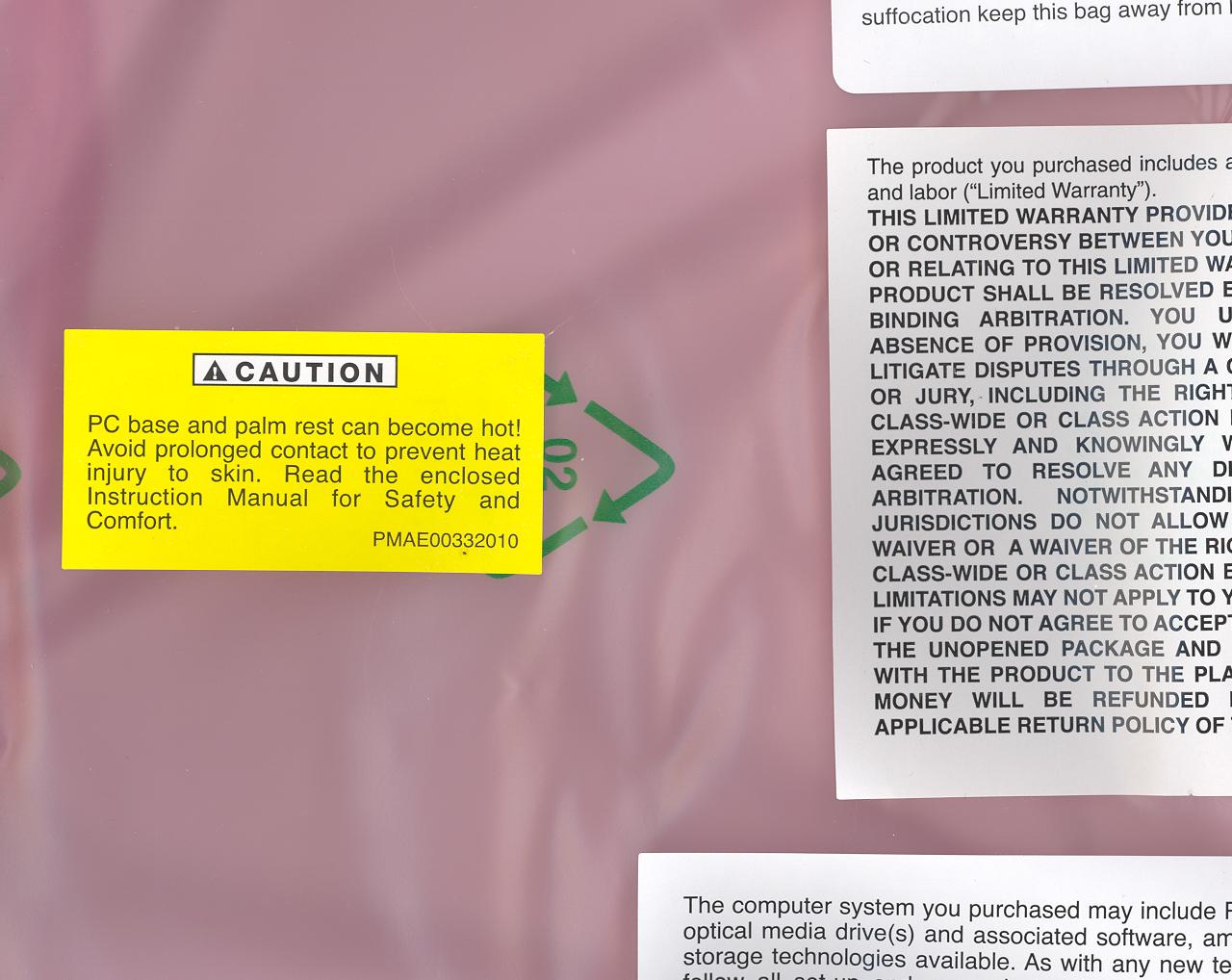 Toshiba actually warns you about this (scan of my shipping bag).