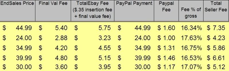 As of about 6 months ago my ebay/paypal seller fees were between 16 and 17% of gross.
