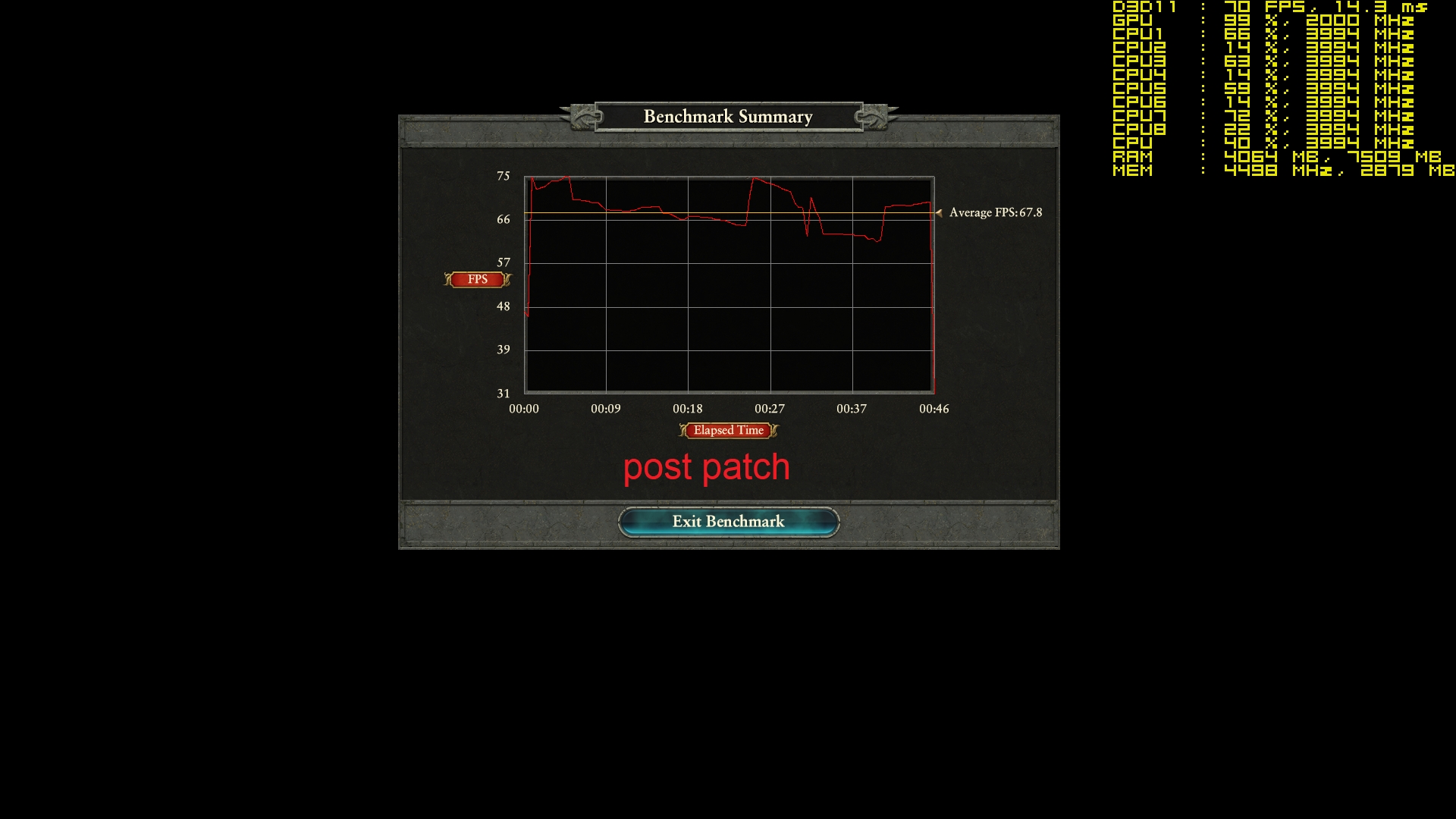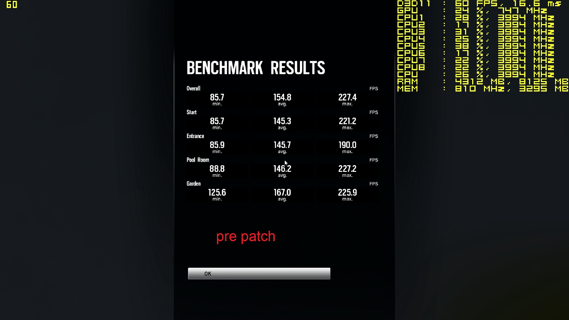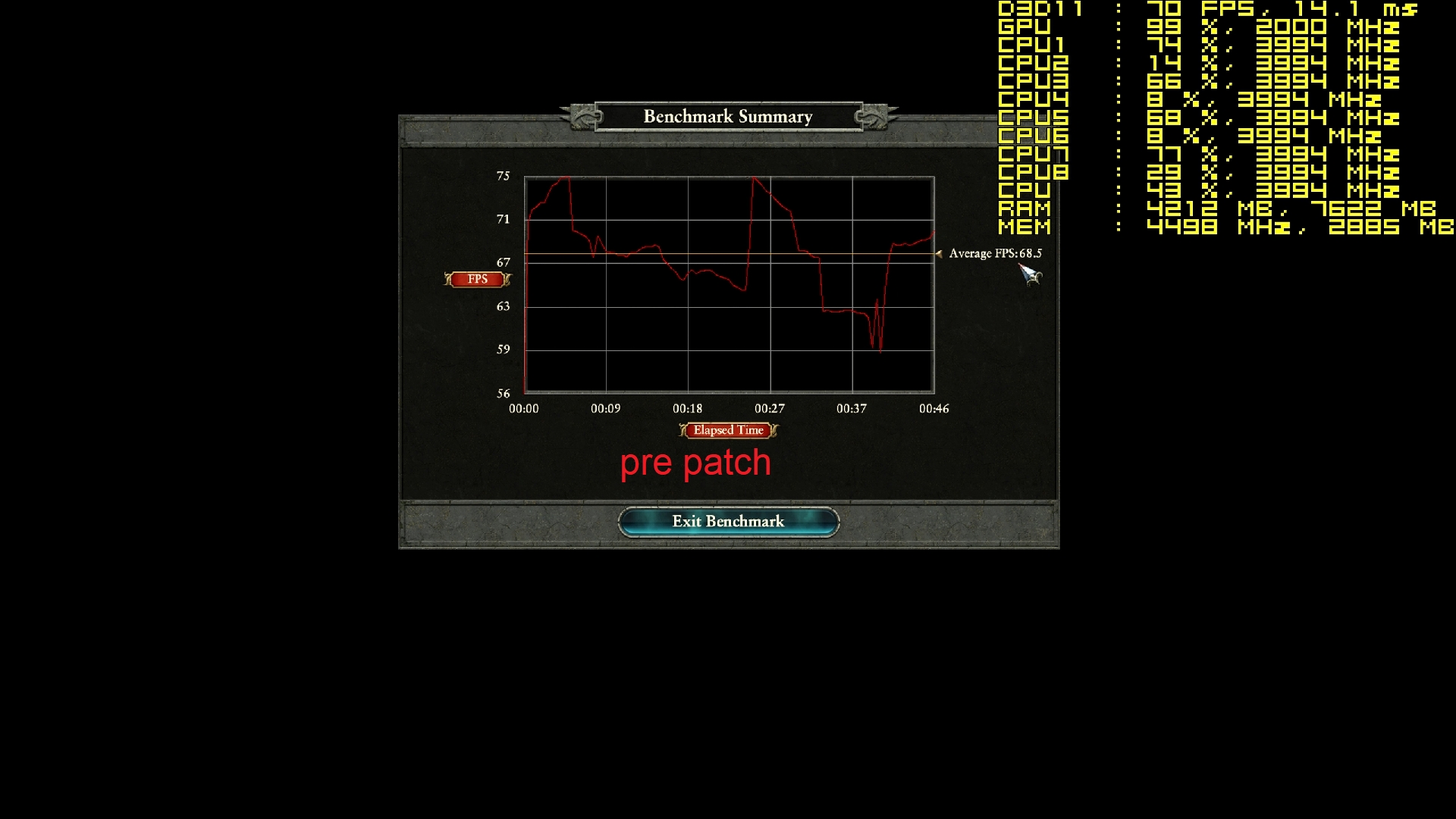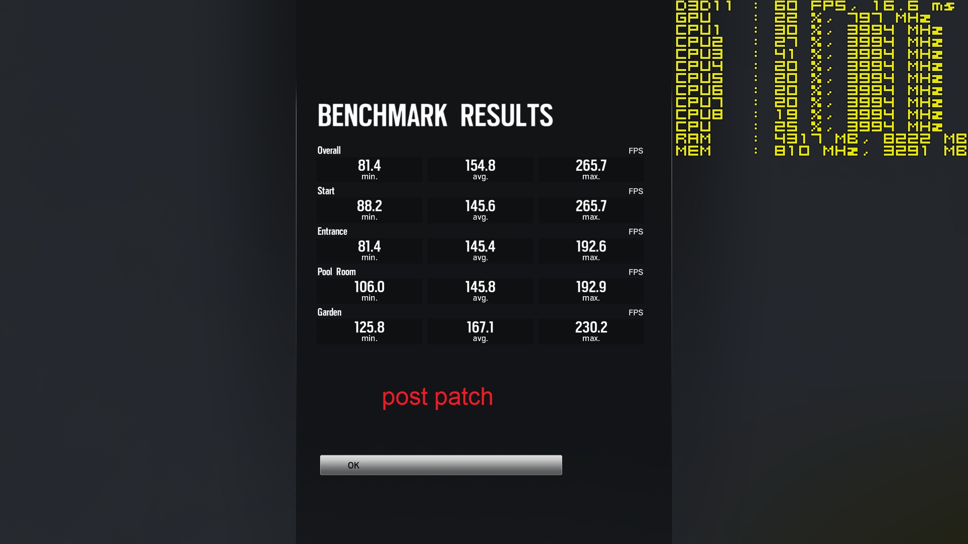 For reference, here are my pre patch benchmarking videos, from which the above pre patch results came from. I did no recordings for the post patch runs.