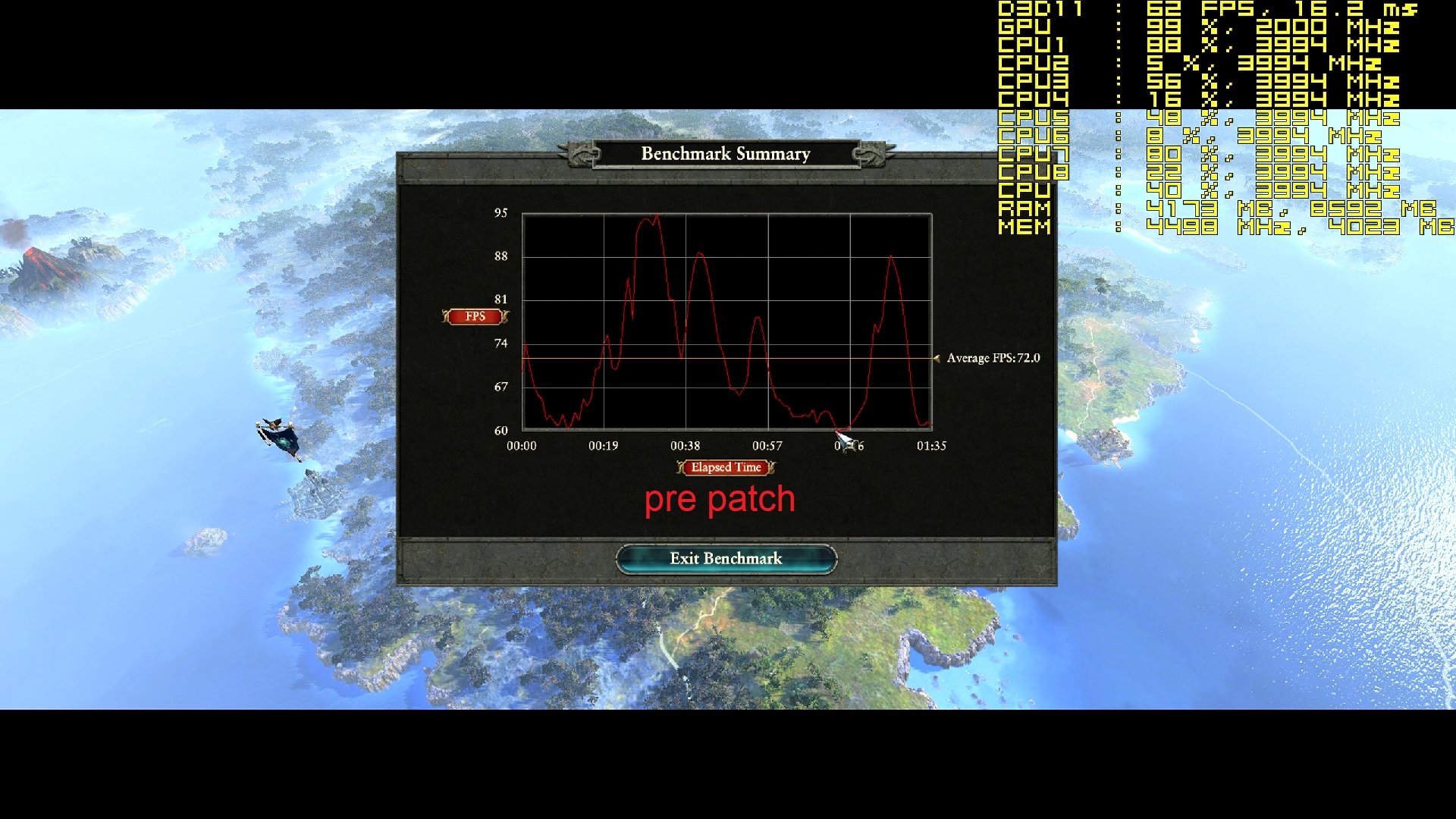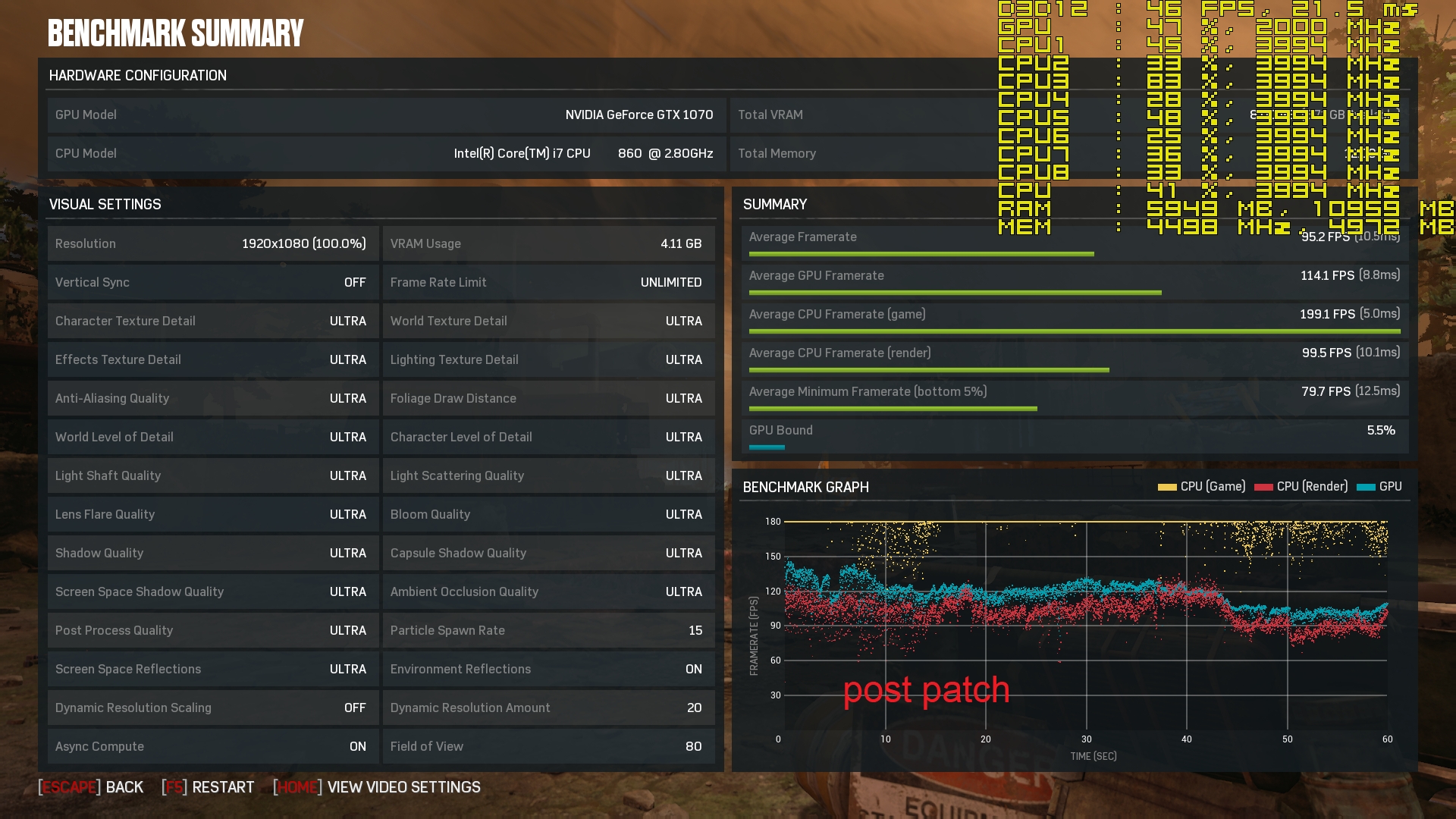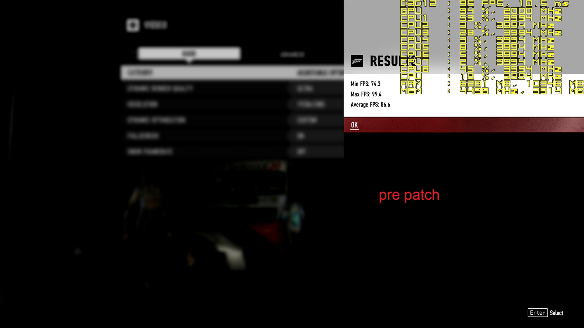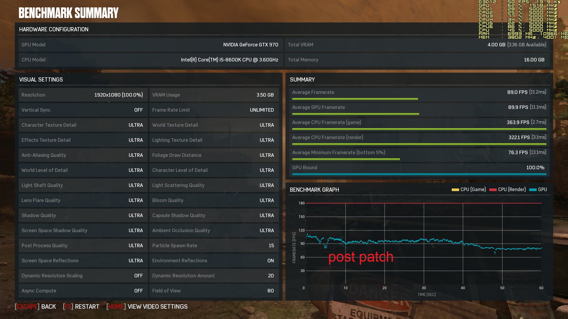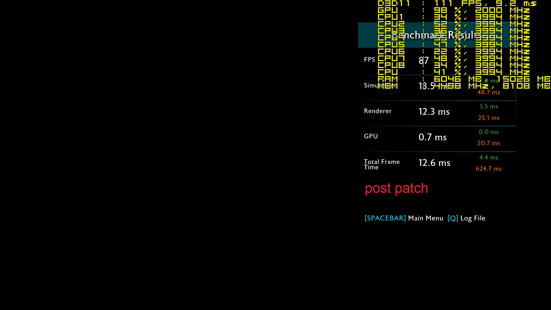 For reference, here are my pre patch benchmarking videos, from which the above pre patch results came from. I did no recordings for the post patch runs.