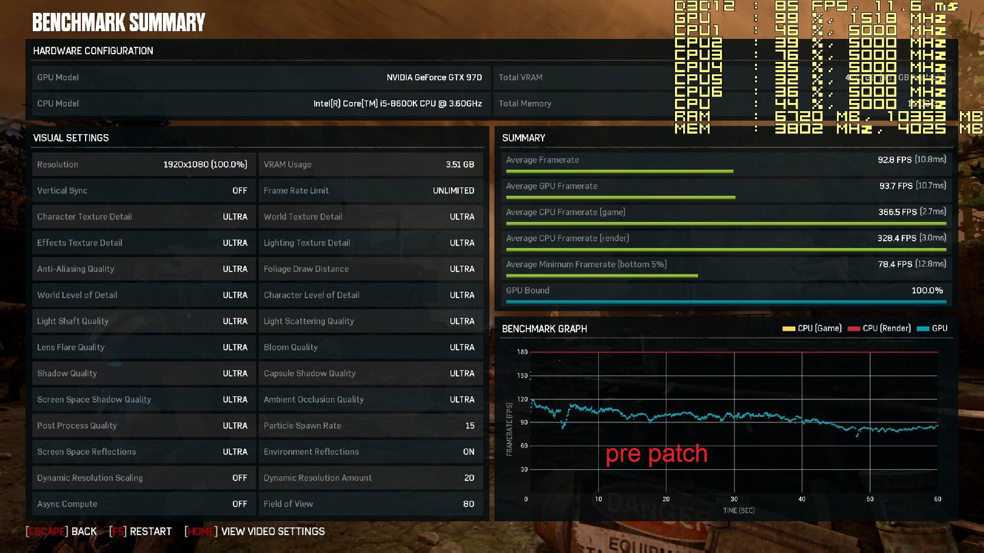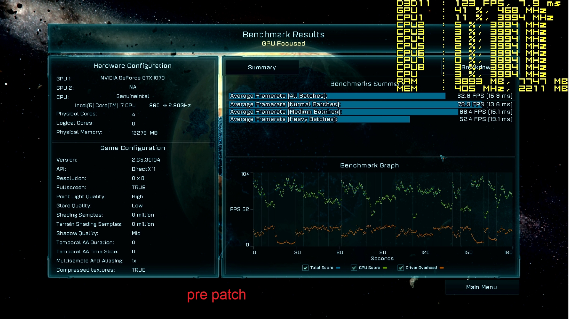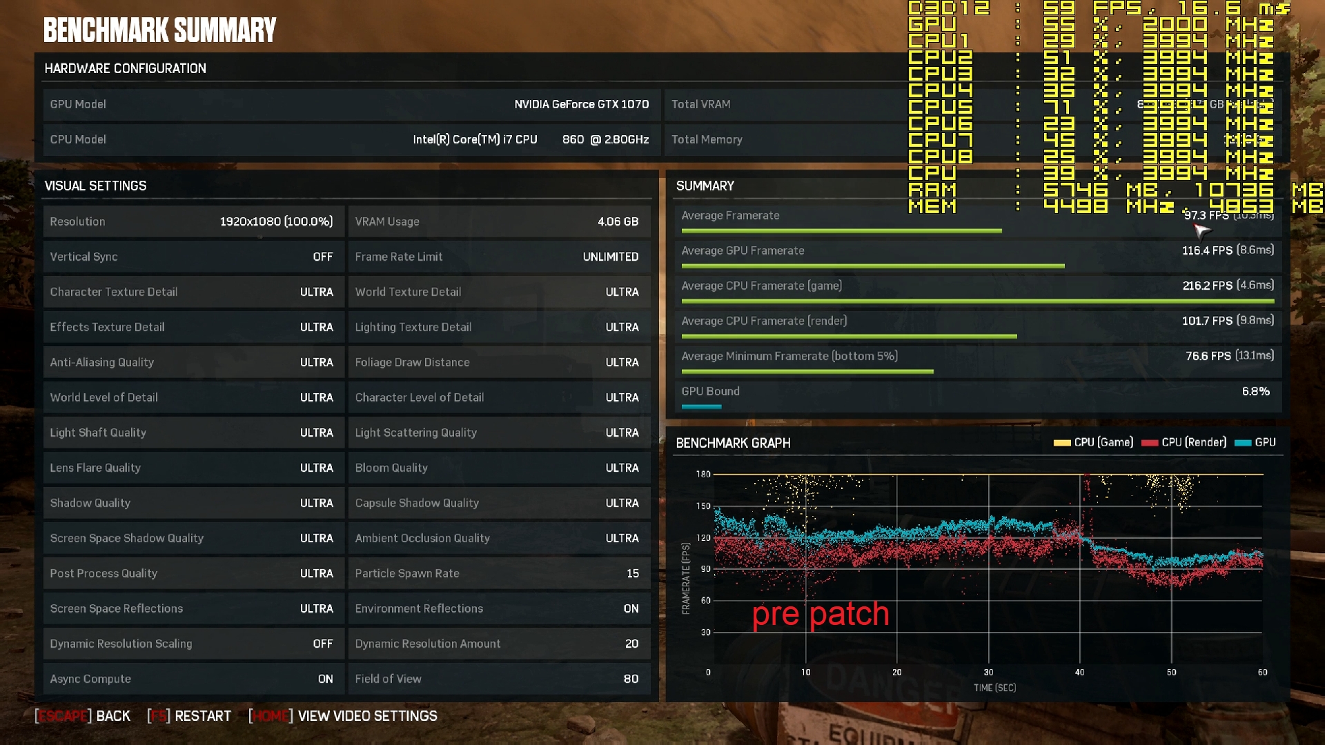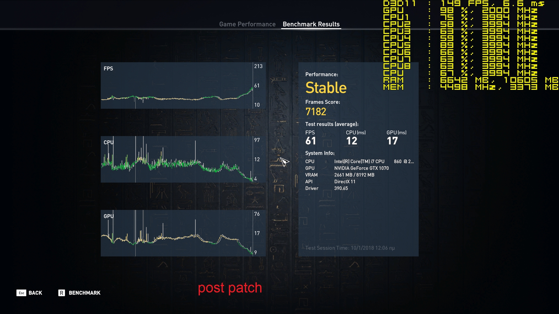 For reference, here are my pre patch benchmarking videos, from which the above pre patch results came from. I did no recordings for the post patch runs.