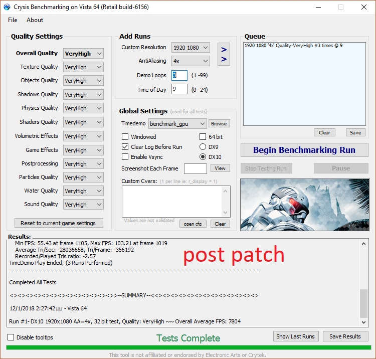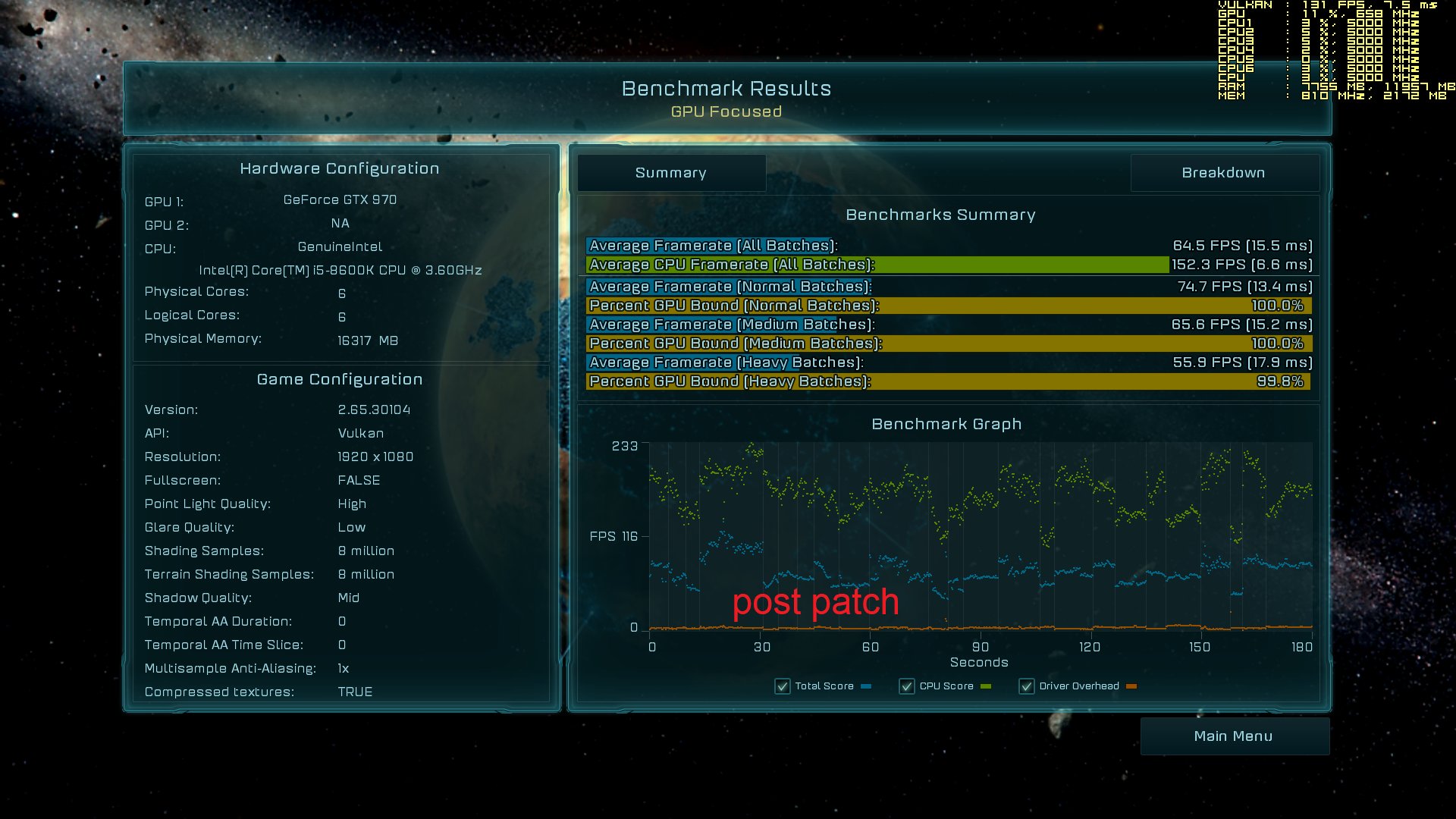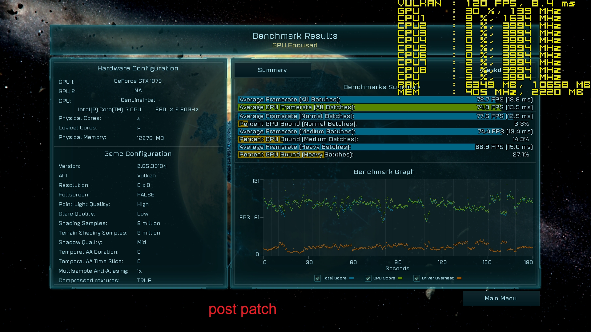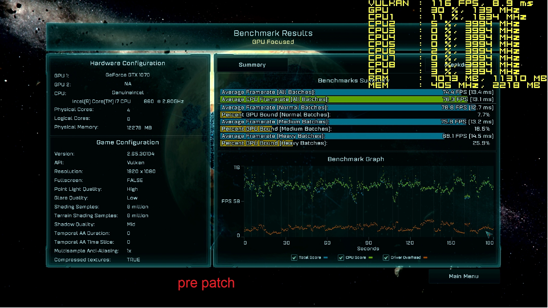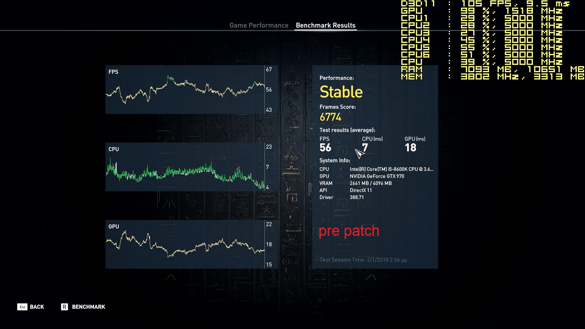 For reference, here are my pre patch benchmarking videos, from which the above pre patch results came from. I did no recordings for the post patch runs.