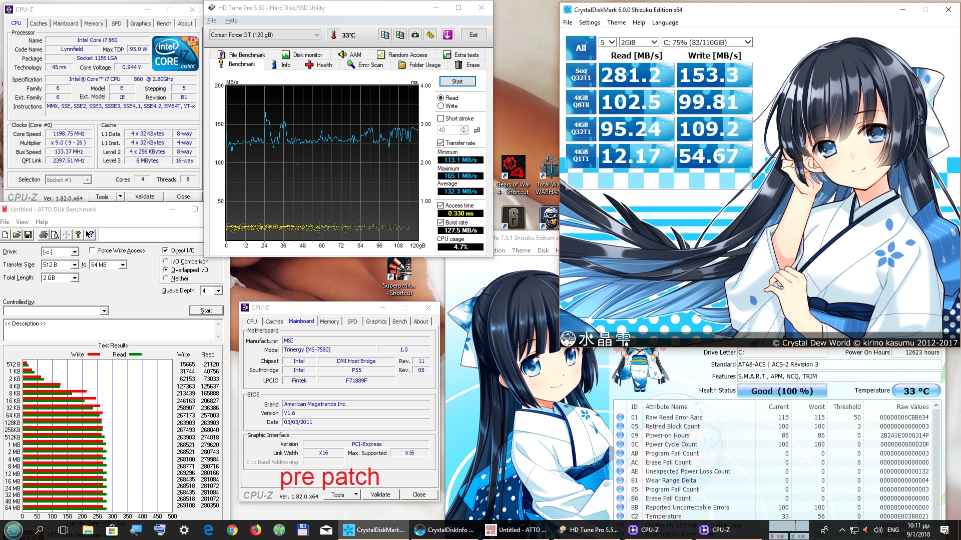 So let’s begin with the core i7-860 SSD benchmarks. Please note that the SSD benchmarks on boths systems, were done at stock clocks. The 860’s SSD is an old but decent Corsair Force GT 120GB.