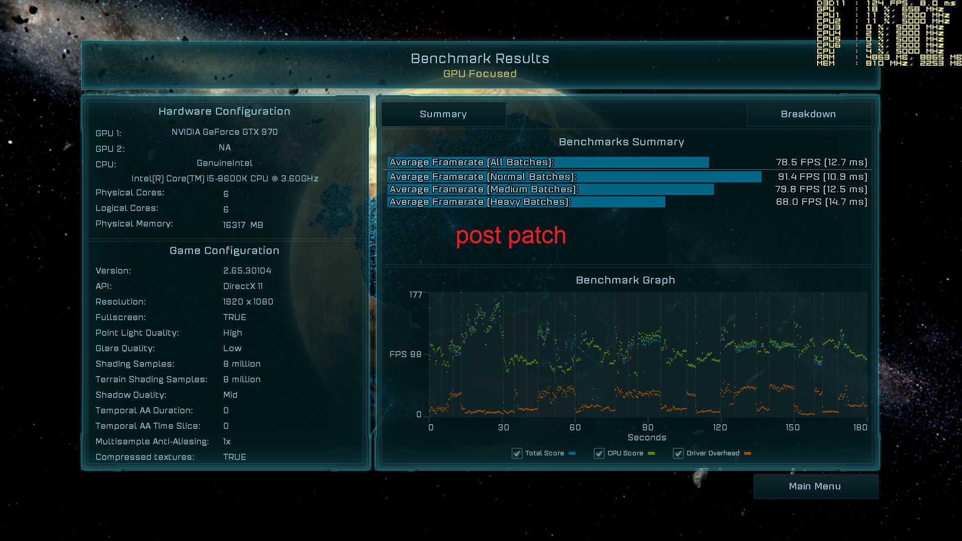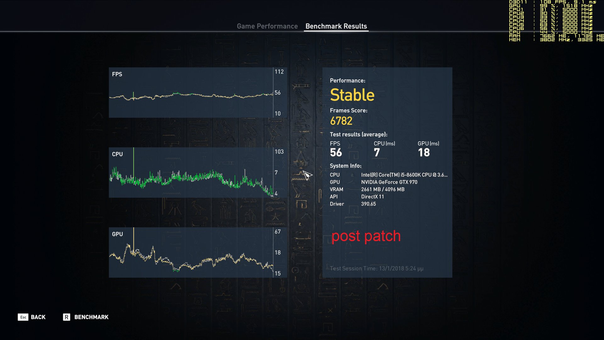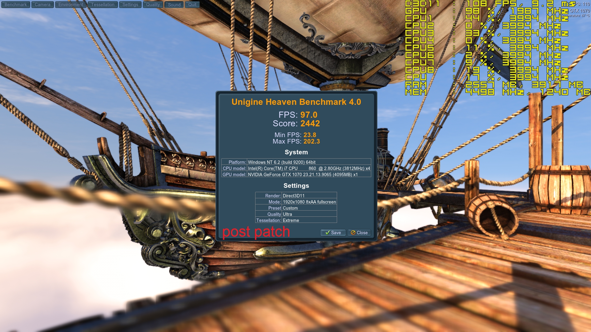 Please note that ALL post patch benchmarks, were with the 390.65 driver for both the 1070+860 and 970+8600k configurations. This driver is not only the latest available, but also brings security updates regarding the recent vulnerabilities.