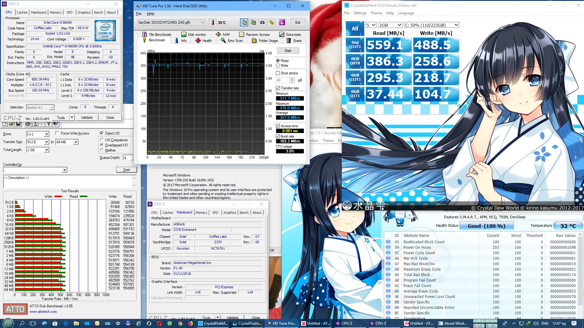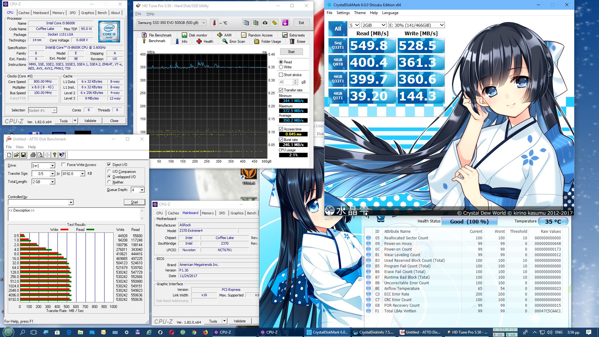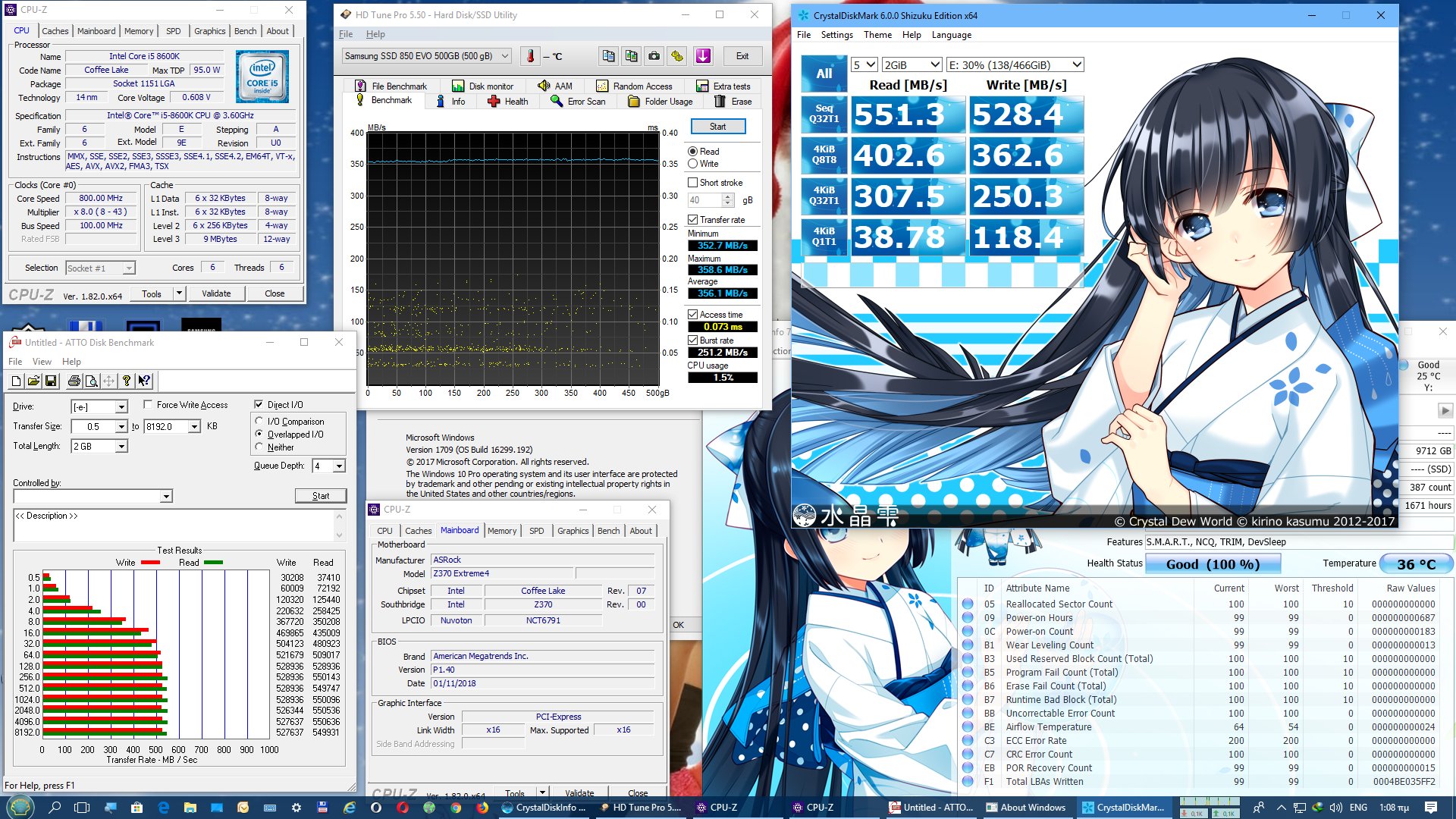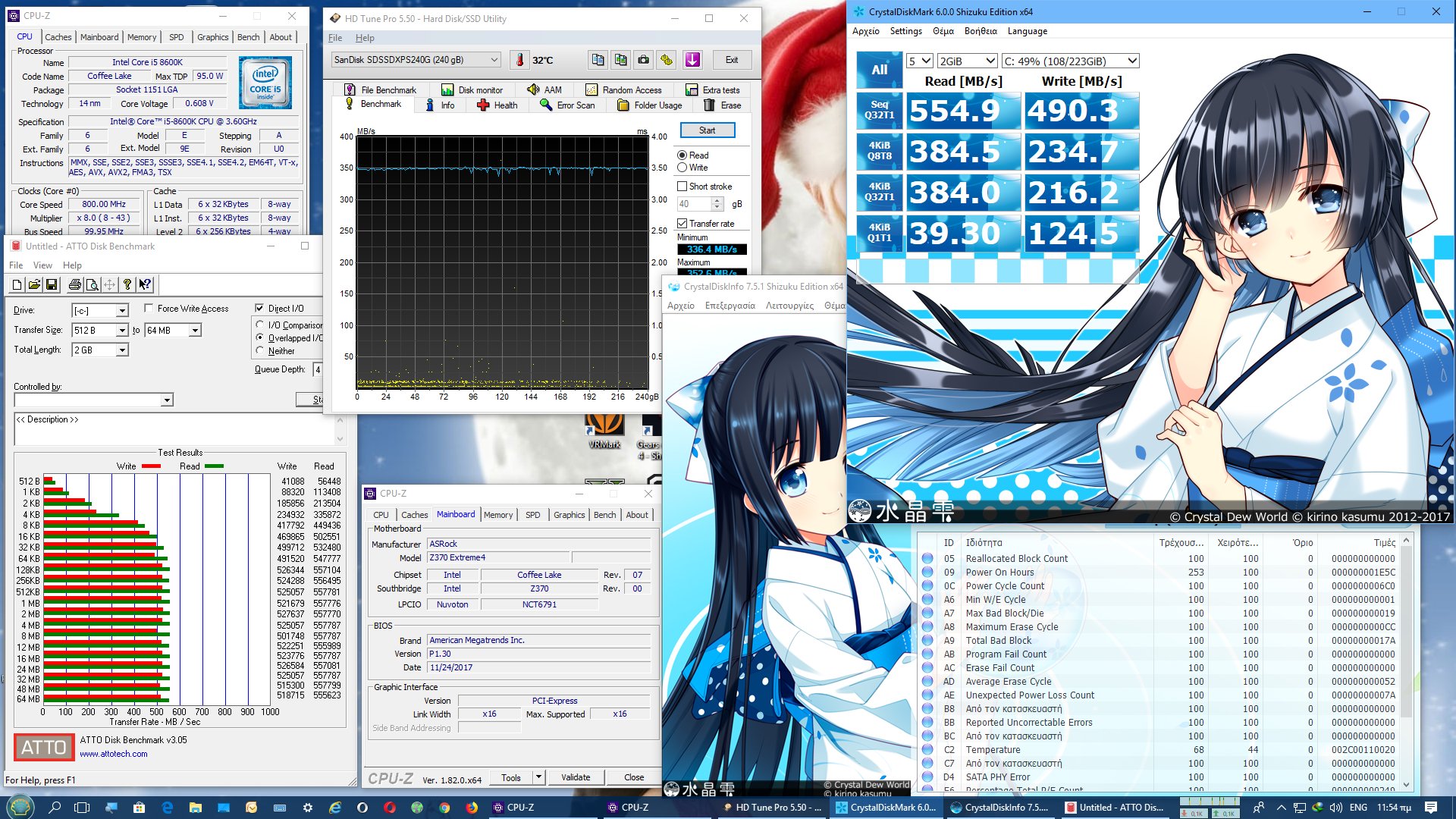 Again the SSD test come first with the system also at stock. Please that all post kb4056892 patch benchmarks on the 8600k, were done with the 1.40 Asrock Z370 Extreme 4 BIOS, which included microcode fixes for the cpu, regarding the Spectre and Meltdown vulnerabilities. It is therefore more solidly patched, compared to i7-860.