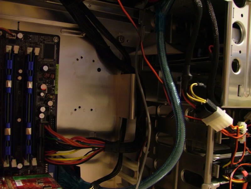 I've come up with a few ideas myself but I thought I could get even more creative ideas here. I have my e6400 OC'd and it idles around 41-45(depending on room temp) and I live in Missouri so temps this time year bounce all over the place. It never goes past 60C during Orthos. Here's my case and a few pics of cable management. It has one 120mm in front and one in back.