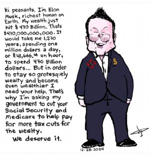 But this is a historical cycle of oligarchs capturing the brains of the easily-fooled and perpetually fearful illiterate masses. Eventually, they will revolt and start eating these billionaires alive, but I worry that we are at a point where these oligarchs have become so entrenched within the nations that now depend on them that they have law and military protection that will keep their heads attached and the peasants that they've been stealing from bloodied and below ground.