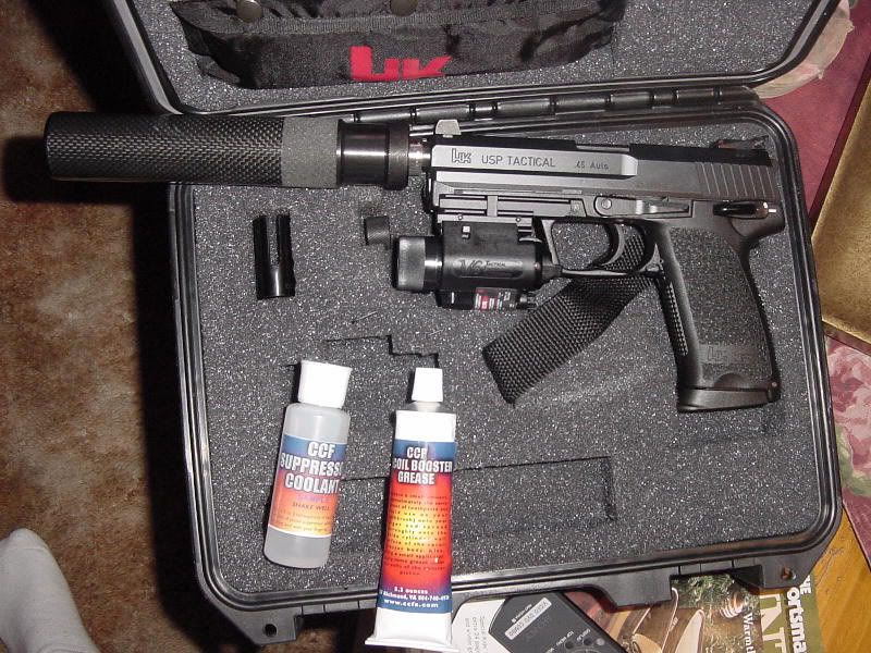 Not an assault weapon, but my USP45 tactical with a can