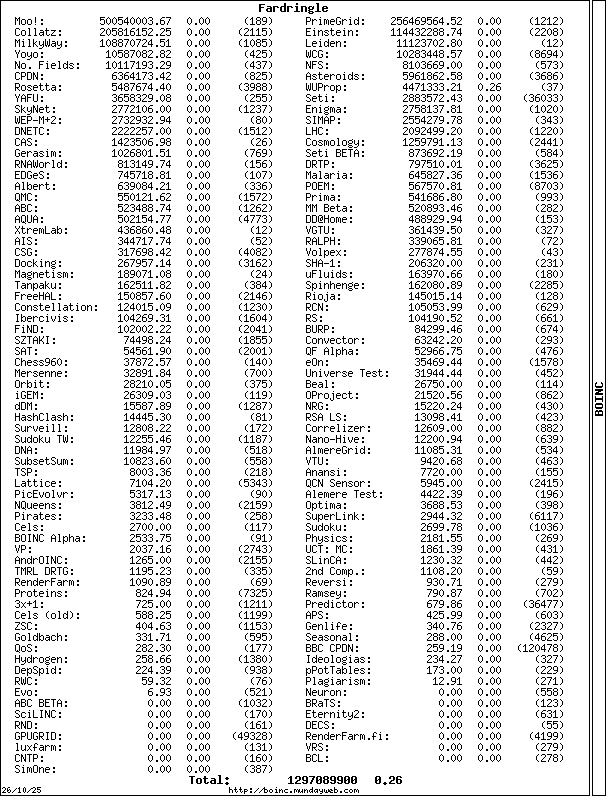 As some of you probably know, part of my enjoyment in distributed computing comes from getting as many points as possible in as many different projects as possible. I just passed 1 million (or better) in DNETC@HOME, Collatz Conjecture, and MooWrapper with my ATI HD5670.