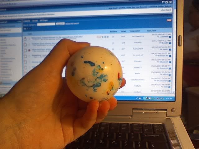 I forgot to show you the jawbreaker he bought me. We went into HOTLIX and, though the homepage doesn't show it, it has a huge variety of candy. (They started out with Cinnamon suckers and I can't remember if it was spearmint or peppermint suckers.) I love jawbreakers and forgot they sold them there. So...he got me one. FTW! :thumbsup::) (Added to the original post. :) )