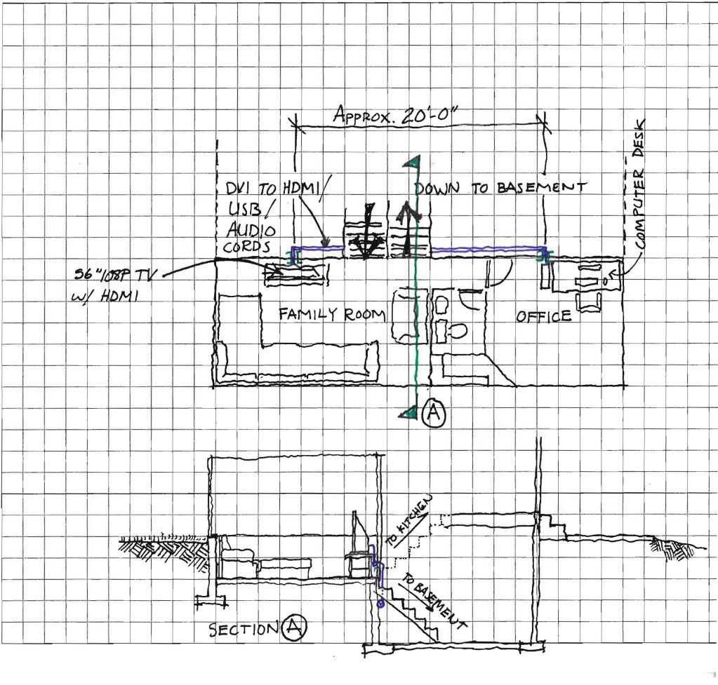 My question is this: my office is about 15-20' from my family room and I can run all the necessary cables through the basement, would this be the cheapest / easiest way to accomplish the job?