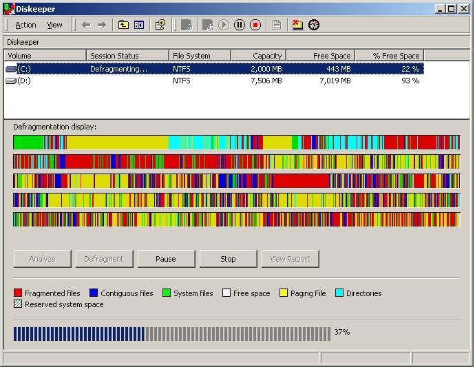 I havent defragged my work PC in over a year, and since then i upgraded from NT4 to win2k(which explains the partitions). I have never seen a drive more fragmented.