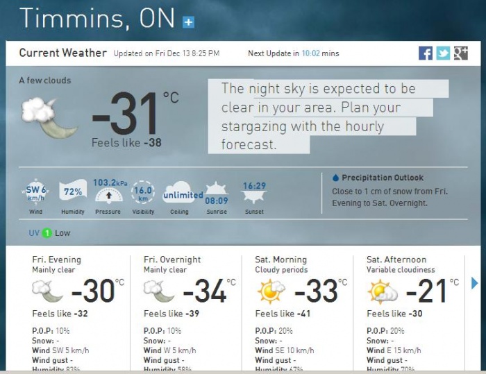 Outside -24.375°C (-) <--- I think this one is a "little" off LOL