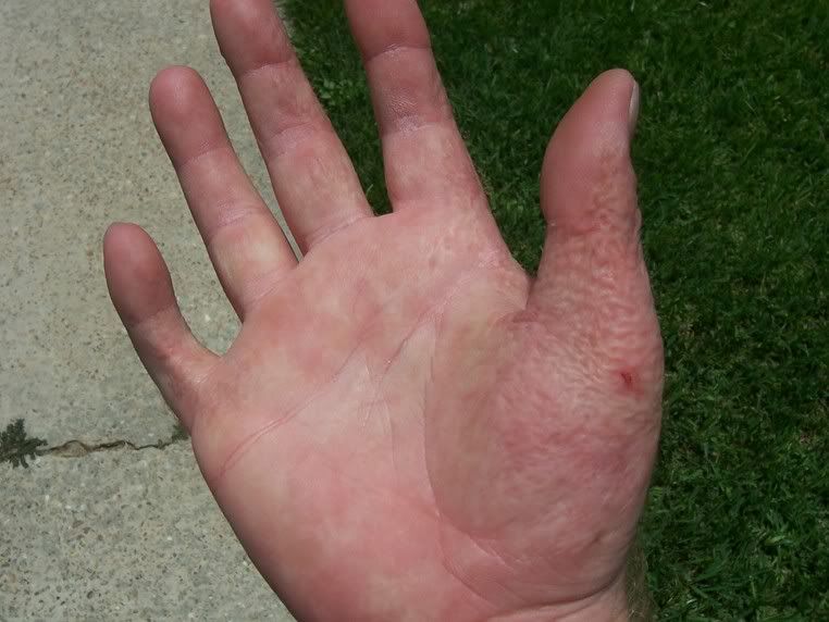 3rd degree burns over 1/3rd of my body caused by 700 degree roofing asphalt when I was 16 years old and working a summer job. Basically, I was hauling some material backwards and the crane driver, who was acting foreman while our normal foreman was on vacation, pushed a mop cart directly behind me without warning me. I hit the back of my knees on the cart and fell backwards into the hot asphalt. My right hand instinctively went back to brace my fall and actually sat in the asphalt for a good 60 seconds. I was leaning back to far to stand straight up so I rolled over to get out of it and the whole thing basically dumped on my back and arms.