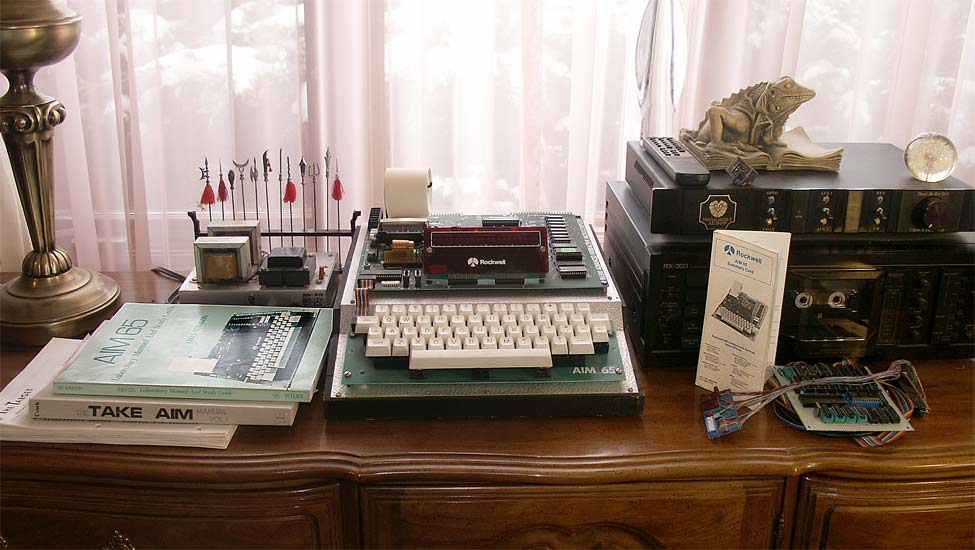 I was moving some of my older, more interesting, computer equipment and decided to snap a picture of this one, a Rockwell AIM-65, which features a 1MHz 6502, 1K of memory (expandable to 4K), a 20-character LED display, and a built-in 2" wide printer.
