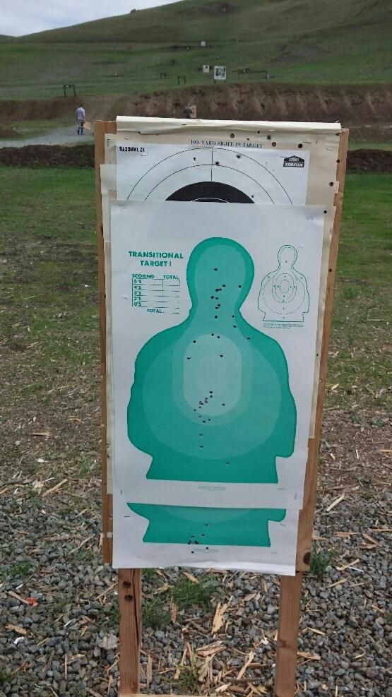 Here are the targets. On the silhouette (http://i151.photobucket.com/albums/s133/OmgHiToU/Mobile%20Uploads/CAM00199_zpsfafd0258.jpg), I got the one through the head, lol, the upside-down horseshoe kind of pattern in the upper-chest and I think some of the shots clustered towered the bottom of the chest and the high right. On the second target (http://i151.photobucket.com/albums/s133/OmgHiToU/Mobile%20Uploads/CAM00199_zpsfafd0258.jpg), mine is in the center of the picture, so it's easy to see which one is mine. First target is 25 yds and second one was 50yds. Not bad for my first time on a regular gun range. :D