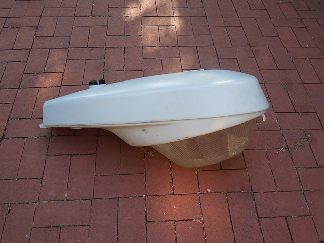 Plastic? All the lights I own (of various manufacturers) are metal, even the newest ones.I always thought the heads were metal being a kid and seeing them from the ground. Now working for a utility I came to find out they're plastic, hehe. Makes sense. You don't want the poor guy up in the bucket killing himself manhandling a heavy metal fixture into place.